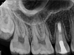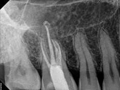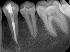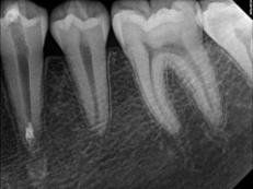 In this case, the unhealthy pulp is removed. The MTA will be placed into the apical portion of the root to stimulate hard tissue to form near the root tip (approximately 4-5 mm's of MTA condensed carefully into the apical portion of the root). The coronal portion of the canal space is then filled with restorations to re-enforce the root and provide more structural integrity. The patient is recalled periodically to monitor the progress of the root-end closure, and decide whether other measures, like root end surgery, may be required.